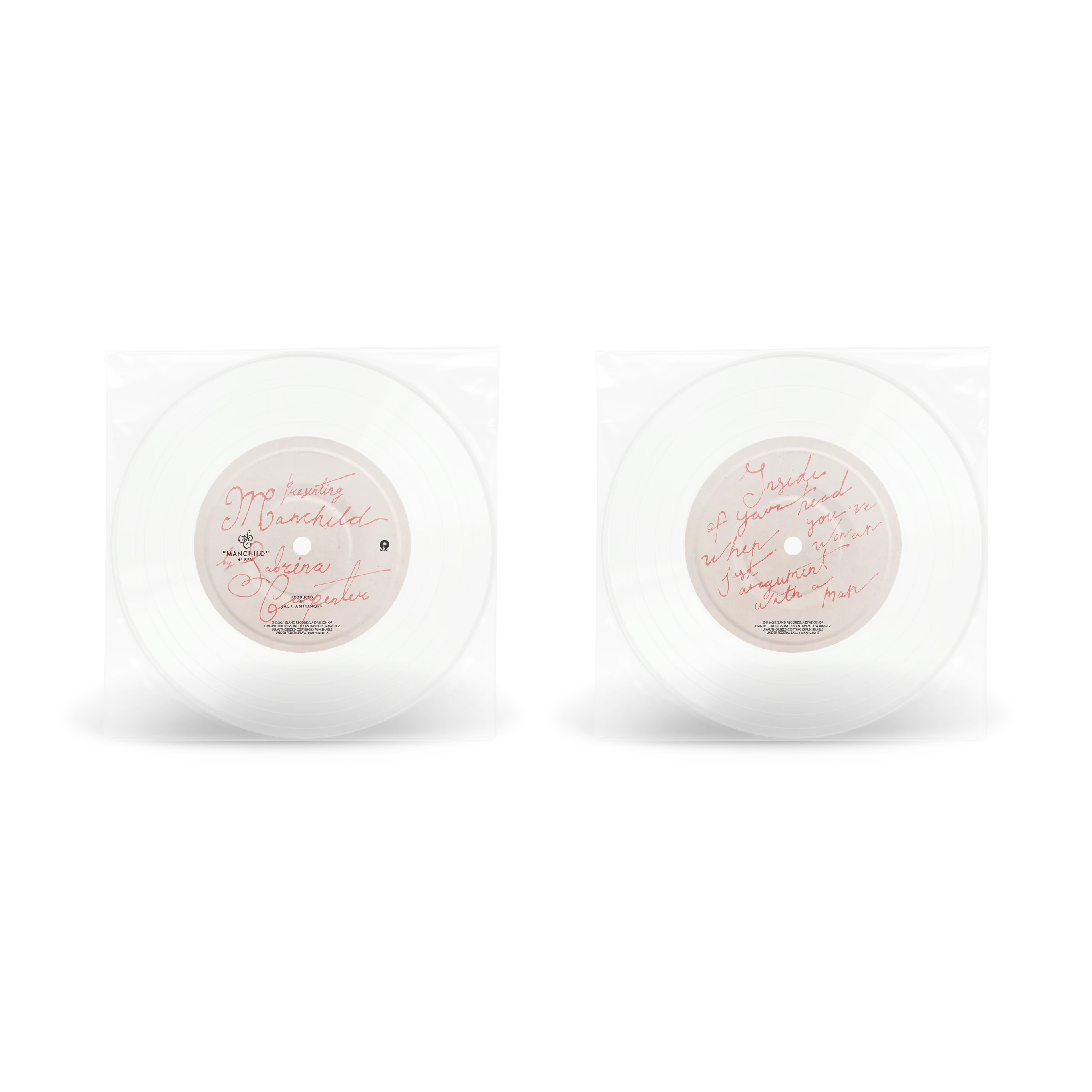 The latest single from the GRAMMY award winning multi hyphenate global popstar. Clear transparent 7" disc housed in a clear plastic sleeve.